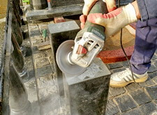 Переходим к созданию надписи. Вырубаем её на граните, затем покрывает акриловой краской. Такой вариант является отличной альтернативой покрытию сусальным золотом, который, к тому же, обходится клиенту значительно дешевле.