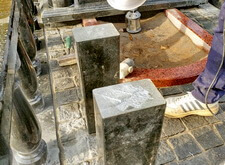 Начинается процесс монтажа. Доставляем памятники, крепим их, приклеиваем и насаживаем на штыри все конструктивные элементы надгробий.